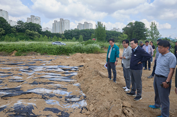 ¹Ú°æ±Í ½ÃÀå°ú °ü°è ºÎ¼ °ø¹«¿øµéÀÌ 8ÀÏ ÇöÀåÀ» ¹æ¹®ÇØ ±ä±Þ Á¶Ä¡ °á°ú¸¦ È®ÀÎÇϰí È®»ê ¹æÁö ¹× Àç¹ß ¹æÁö ´ëÃ¥À» ³íÀÇÇß´Ù.