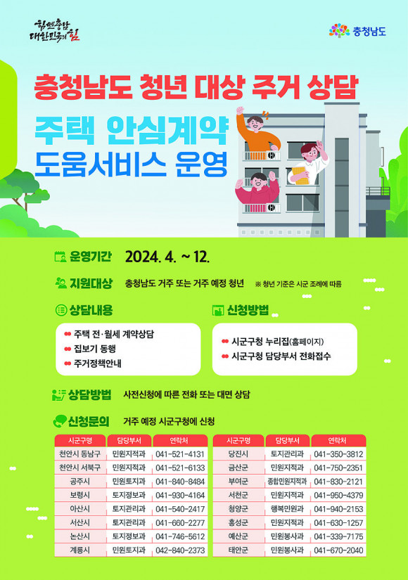 | | ¡è¡è <»çÁøÁ¦°ø=Ãæ³²µµ> | ¨Ï (ÁÖ)¿Â¾ç½Å¹®»ç | | Ãæ³²µµ´Â Àü¿ù¼¼ °è¾à °æÇèÀÌ ºÎÁ·ÇÑ µµ³» û³âÀ» ´ë»óÀ¸·Î ¿Ã ¿¬¸»±îÁö ¡®ÁÖÅà ¾È½É°è¾à µµ¿ò¼ºñ½º¡¯¸¦ º»°Ý ½ÃÇàÇÑ´Ù°í 6¿ù 10ÀÏ ¹àÇû´Ù.