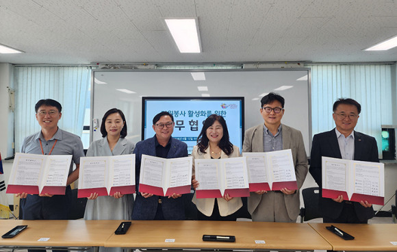 ¾Æ»ê½ÃÀÚ¿øºÀ»ç¼¾ÅÍ(¼¾ÅÍÀå±è±ââ)´Â 6¿ù 12ÀÏ(¼ö) 5°³ Á¾ÇÕ»çȸº¹Áö°ü°ú ÀÚ¿øºÀ»çȰµ¿À» ÅëÇÑ Áö¿ª°øµ¿Ã¼ °Ç¼³°ú º¹ÁöÇâ»óÀ» À§ÇØ °øµ¿¾÷¹«Çù¾àÀ» ü°áÇß´Ù.