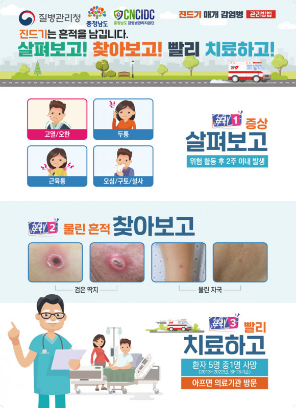 SFTSÀÇ Àü±¹ ´©Àû Ä¡¸í·üÀº 18.7%·Î »ó´çÈ÷ ³ôÀº ÆíÀ̸ç, Àẹ±â´Â 5¡14ÀÏÀ̰í ÁÖ¿ä Áõ»óÀº ¹ß¿, ÇǷΰ¨, ¼Òȱâ°è ÀÌ»ó, ±ÙÀ°Åë, µÎÅë, ½Å°æ°è ÀÌ»ó µîÀ¸·Î ½ÉÇÏ¸é »ç¸Á¿¡ À̸¦ ¼ö ÀÖ´Ù.