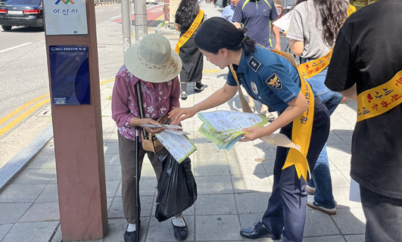 ¾Æ»ê°æÂû¼´Â 26ÀÏ ¿Â¾ç¿Âõ¿ª ÁÖº¯ ¹× ¿Â¾ç Àç·¡½ÃÀå¿¡¼ ³ëÀÎÇÐ´ë ±ÙÀýÀ» À§ÇØ Ãæ³²³ëÀκ¸È£Àü¹®±â°ü°ú ÇÔ²² ¡®³ëÀÎÇÐ´ë ¿¹¹æ Ä·ÆäÀΡ¯À» ÁøÇàÇß´Ù.