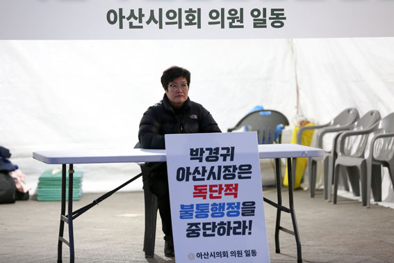 2023³â 3¿ù ¹Ú°æ±Í ¾Æ»ê½ÃÀåÀ¸·Î ´ëÇ¥µÇ´Â ¾Æ»ê½Ã ÁýÇàºÎ°¡ ÀÇȸÀÇ ¿¹»ê¾È ½ÉÀÇ‧Àǰá±ÇÀ» ¹«½ÃÇϰí ÇлýµéÀÇ ±³À°Áö¿ø °æºñ ÀϺΠ¿¹»ê ÁýÇàÀ» ÀϹæÀûÀ¸·Î Áß´ÜÇÏÀÚ ÀÇȸ ¿©¾ß ÀÇ¿øÀÌ ÇѸñ¼Ò¸®·Î ¡®±³À°Áö¿ø°æºñ ÀϺΠ¿¹»ê ÁýÇà Áß´Ü Ã¶È¸¡¯¸¦ Ã˱¸ÇÏ¸ç ½Ãû Çö°ü ¾Õ¿¡¼ 15Àϰ£ÀÇ Ãµ¸· ö¾ß ³ó¼ºÀ» ¤ÐᅟᅧᆯÄ£ ÀÏÀ» ȸ°íÇß´Ù.