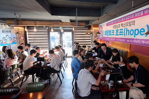 À̳¯ Âü¼®ÀÚµéÀº ÀÚÀ¯·Î¿î ºÐÀ§±â¿¡¼ Ä¡¸ÆÀ» °çµéÀ̸ç Çã½ÉźȸÇÏ°Ô ¾Æ»ê½ÃÀÇ ÀÏÇÏ´Â ¹æ½Ä°ú Á¶Á÷¹®È¿¡ ´ëÇÑ ¼¼´ë °£ ÀÎ½Ä Â÷À̸¦ ÀÌÇØÇÏ°í °ø°¨ÇØ º¸´Â ½Ã°£À» °¡Á³´Ù.