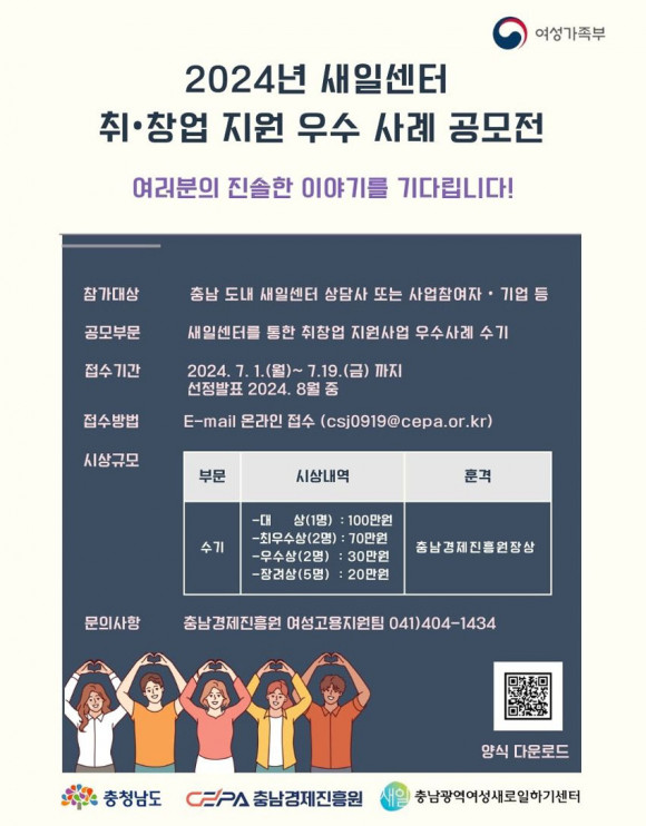 À̹ø °ø¸ðÀüÀº ¿©¼º °æÁ¦È°µ¿ ¼ºñ½º¸¦ Áö¿øÇÏ´Â »õÀϼ¾ÅÍ ºÎ¹®°ú Âü¿©ÀÚ ºÎ¹®À¸·Î ³ª´©¾î ÁøÇàµÇ¸ç, Âü¿©ÀÚ ºÎ¹®Àº »õÀϼ¾ÅÍ ÇÁ·Î±×·¥ ÀÌ¿ë °æÇèÀÌ ÀÖ´Â Âü¿©ÀÚ ¶Ç´Â ±â¾÷ÀçÁ÷ÀÚ¸é ´©±¸³ª Âü¿©ÇÒ ¼ö ÀÖ´Ù.