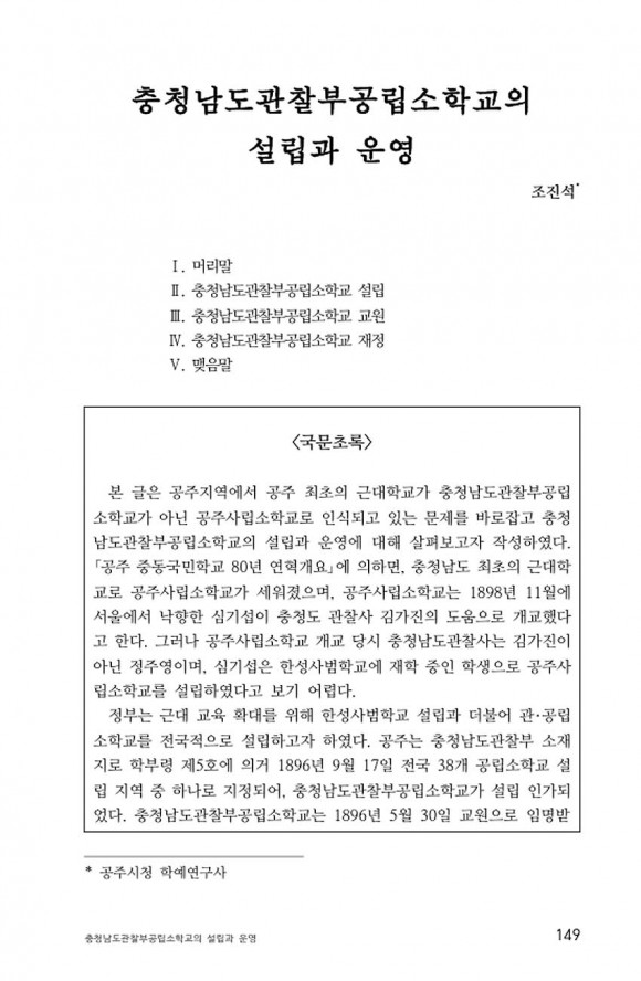 ÀÌ ³í¹®Àº °øÁÖ ÃÖÃÊÀÇ ±Ù´ëÇб³°¡ ±×µ¿¾È 1898³â¿¡ ¼³¸³µÈ °øÁֻ縳¼ÒÇб³·Î ¾Ë·ÁÁ® ÀÖ´ø °ÍÀ», À̺¸´Ù À̸¥ 1896³â ÃæÃ»³²µµ°üÂûºÎ°ø¸³¼ÒÇб³°¡ ¼³¸³µÇ¾úÀ½À» ¹àÈ÷°í, °øÁÖÀÇ ±Ù´ë ±³À°ÀÇ º¯Ãµ °úÁ¤À» ¸é¹ÐÇÏ°Ô »ìÆìº¸¾Ò´Ù´Â Á¡¿¡¼ Å« Àǹ̸¦ °¡Áø´Ù.
