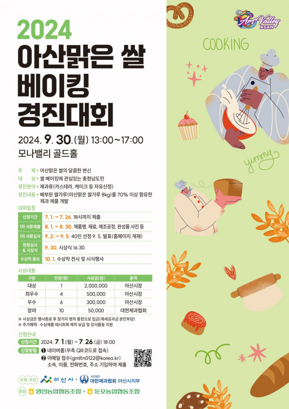 Âü°¡ ½ÅûÀº Æ÷½ºÅÍ QRÄڵ带 ÅëÇØ ³×À̹ö ÆûÀ» ÀÛ¼ºÇØ Á¦ÃâÇϰųª ¼Ò¼Ó, À̸§, »ý³â¿ùÀÏ, ÀüȹøÈ£, ÁÖ¼Ò¸¦ ±âÀÔÇØ À̸ÞÀÏ(gmltn0122@korea.kr)·Î Á¦ÃâÇÏ¸é µÈ´Ù. ÀÚ¼¼ÇÑ ¹®ÀÇ´Â ¾Æ»ê½Ã ³óÃÌÀÚ¿ø°ú(041-537-3813)·Î ÇÏ¸é µÈ´Ù.
