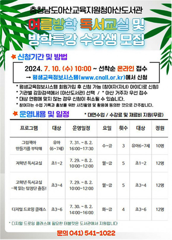 ¾Æ»ê±³À°Áö¿øÃ»¾Æ»êµµ¼°üÀº ¿©¸§¹æÇÐ µ¶¼±³½Ç ¹× ¹æÇРƯ° ÇÁ·Î±×·¥¿¡ Âü¿©ÇÒ ¼ö°»ýÀ» 7¿ù 10ÀÏ 10½ÃºÎÅÍ ÃæÃ»³²µµ±³À°Ã»Æò»ý±³À°Á¤º¸½Ã½ºÅÛ(www.cnall.or.kr)À» ÅëÇØ ¿Â¶óÀÎ ¼±Âø¼øÀ¸·Î ¸ðÁýÇÑ´Ù.