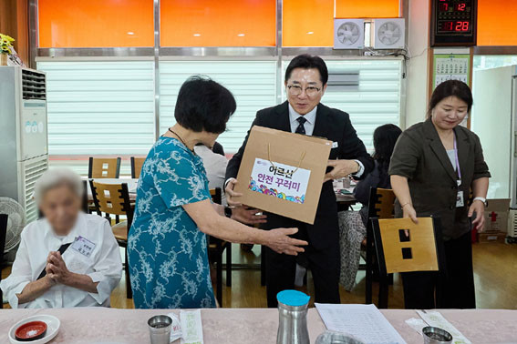 ¹Ú°æ±Í ½ÃÀåÀº ¡°¿ì¸® »çȸ¸¦ À̲ø¾î ¿À½Å ¾î¸£½ÅµéÀÌ °Ç°Çϰí ÇູÇÏ°Ô ±Ýºû ³ëÈĸ¦ º¸³»½Ãµµ·Ï Ç×»ó ³ë·ÂÇϰí ÀÖÀ½¿¡µµ ¼¼¼¼ÇÏ°Ô »ìÇÇÁö ¸øÇÏ´Â ºÎºÐÀÌ ÀÖ´Â °Í °°´Ù¡±¸ç, ¡°¿À´Ã ÀüÇØµå¸° ¾ÈÀü²Ù·¯¹Ì°¡ ¾î¸£½ÅµéÀÇ ¾ÈÀü¿¡ Á¶±ÝÀ̳ª¸¶ µµ¿òÀÌ µÇ±æ ¹Ù¶õ´Ù¡±°í ¸»Çß´Ù.