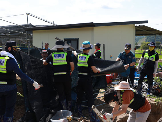 À̳¯ ±Ý»ê±º Á¦¿ø¸é ´ë»ê¸® ÀÏ´ë 1õ400ÆòÀÇ ¼öÇØ ÇöÀå¿¡¼ ħ¼ö ÀλïÆ÷ ö°Å, À¯·ù¹°¡¤Åä»ç¹° ¹èÃâ ÀÛ¾÷ µîÀ» ÁøÇàÇß´Ù.