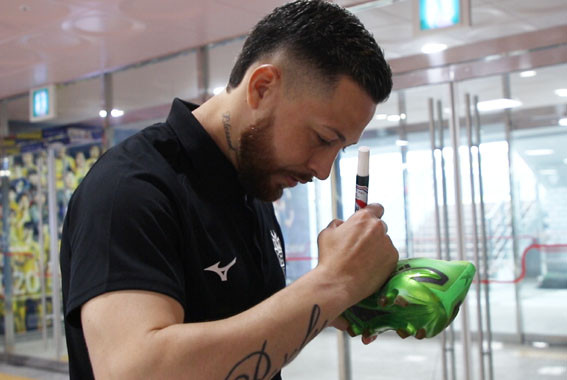 Ãæ³²¾Æ»êÇÁ·ÎÃ౸´Ü(±¸´ÜÁÖ ¹Ú°æ±Í, ÀÌÇÏ Ãæ³²¾Æ»ê) µÎ¾Æ¸£Å×°¡ ¾Æ»ê½Ã ½Å±¤ÃʵîÇб³(ÀÌÇÏ ½Å±¤ÃÊ)¿¡ ÀçÇÐ ÁßÀÎ Çлýµé¿¡°Ô ½ÇÂø »çÀÎ Ã౸ȸ¦ ¼±¹°ÇØ ÀØÁö ¸øÇÒ Ãß¾ïÀ» ¼±»çÇß´Ù.