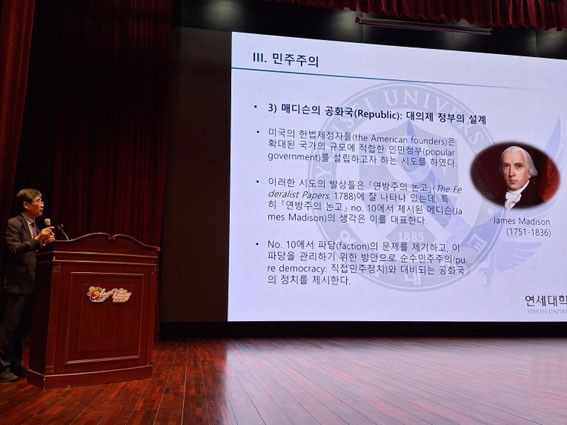 À̳¯ ¡®ÀÚÀ¯ÁÖÀÇ¿Í ¹ÎÁÖÁÖÀÇ: ¾Æ¸§´Ù¿î µ¿Çà?¡¯À» ÁÖÁ¦·Î °¿¬¿¡ ³ª¼± Àå ±³¼ö´Â ¡°¿À´Ã ÀÚÀ¯ÁÖÀÇ¿Í ¹ÎÁÖÁÖÀÇ¿¡ ´ëÇÑ ¼³¸íÀÌ Çѱ¹ ¹ÎÁÖÁ¤Ä¡¸¦ ÀÌÇØÇÏ´Â µ¥ µµ¿òÀÌ µÇ±æ ¹Ù¶õ´Ù¡±¸ç °ÀǸ¦ ½ÃÀÛÇß´Ù.