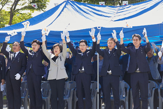 Ã߸ðÁ¦¿¡ Âü¼®ÇÑ ¹Ú°æ±Í ½ÃÀåÀº ¡°°ûÇÑÀÏ ÀǺ´ÀåÀÇ À§´ëÇÑ ÀǺ´ Ȱµ¿°ú Çå½ÅÀ» ±×µ¿¾È Á¦´ë·Î ¸ð½ÃÁö ¸øÇß´Ù¡±¸ç, ¡°¹Î¼±8±â µé¾î º¸ÈÆ ½ÃÁ¤ Á¾ÇÕ°èȹÀ» ¼ö¸³Çϰí, À̹ø Ã߸ðÁ¦¸¦ ½Ã¹Î ÀüüÀÇ À̸§À¸·Î ¸ð½Ã´Â ¡®½Ã ´ÜÀ§ Çà»ç¡¯·Î °Ý»óÇß´Ù¡±°í ¸»Çß´Ù