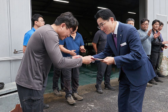 À̳¯ ¹Ú ½ÃÀåÀº 5°³ ºÎ¼ÀÇ ÇöÀå ±Ù¹«Áö¸¦ ã¾Æ ¾Æ»ê»ç¶û»óǰ±ÇÀ» Àü´ÞÇÏ¸ç °¨»ç¸¦ ÀüÇßÀ¸¸ç, ³ª¸ÓÁö 6°³ ºÎ¼¿¡ ´ëÇØ¼´Â °¢ ºÎ¼ÀåÀ» ÅëÇØ °Ý·Á±ÝÀ» Àü´ÞÇß´Ù.