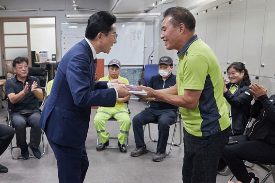 ÀÌ ÀÚ¸®¿¡¼ ¹Ú ½ÃÀåÀº ¡°½Ã¹ÎÀ» À§ÇØ ÇàÁ¤ ÃÖÀϼ±¿¡¼ ¹¬¹¬È÷ ±¸½½¶¡À» È긮´Â ¿©·¯ºÐÀÇ ³ë°í¿¡ 38¸¸ ½Ã¹ÎÀ» ´ë½ÅÇØ Áø½ÉÀ¸·Î °¨»çµå¸°´Ù¡±¸ç ¡°ÇöÀå ±Ù¹« Á÷¿øºÐµé ´öºÐ¿¡ ½Ã¹ÎµéÀÌ ´õ¿í ±ú²ýÇÏ°í ¾ÈÀüÇÑ »ýȰÀ» ´©¸± ¼ö ÀÖ´Ù¡±°í °Ý·Á¿Í °í¸¶¿òÀ» ¹àÇû´Ù.