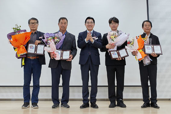 À̳¯ ¹Ú°æ±Í ½ÃÀåÀº ¾Æ»ê½Ã Ãà»ê´ÜüÇùÀÇȸ ºÀ»çȰµ¿À» ÅëÇÑ °øµ¿Ã¼ Çü¼º¿¡ À̹ÙÁöÇÑ ÇÑ»óÈñ(ÇÑ¿ì), ÀÓ½ÂÈñ(³«³ó), ¹Ú¼ºÀÎ(»ê¶õ°è), À̰æ¿ì(»ç½¿) ¾¾¿¡ ǥâÇÏ°í °¨»çÀÇ ¸¶À½À» ÀüÇß´Ù.