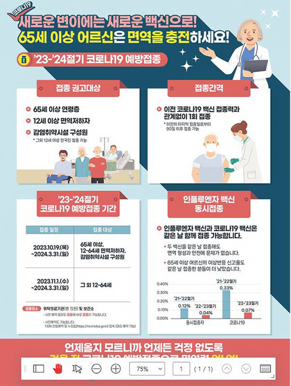 ¿À´Â 10¿ù 19ÀϺÎÅÍ ¡â65¼¼ ÀÌ»ó ¾î¸£½Å ¡â12~64¼¼ ¸é¿ªÀúÇÏÀÚ ¡â¿ä¾çº´¿ø, ¿ä¾ç½Ã¼³ µî °¨¿° Ãë¾à ½Ã¼³ ÀÔ¿ø?ÀÔ¼Ò?Á¾»çÀÚ µî Á¢Á¾ ±Ç°í ´ë»óÀÚºÎÅÍ ¿ì¼± Á¢Á¾Çϸç, ±× ¿Ü 12¼¼ ÀÌ»óÀÇ ½Ã¹ÎÀº 11¿ù 1ÀϺÎÅÍ Á¢Á¾¹ÞÀ» ¼ö ÀÖ´Ù.