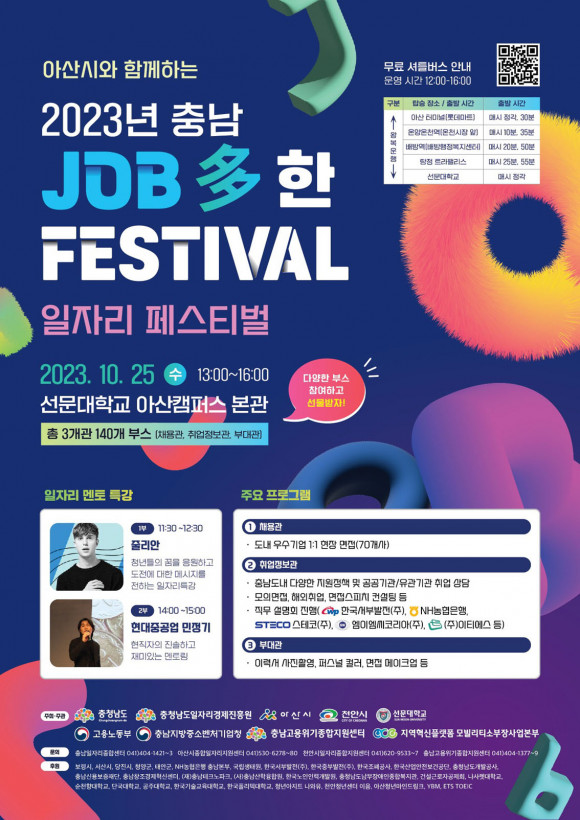ÃæÃ»³²µµ°¡ ÁÖÃÖÇÏ°í ¾Æ»ê½Ã, õ¾È½Ã µîÀÌ ÁÖ°üÇÏ´Â À̹ø Æä½ºÆ¼¹úÀº ä¿ë°ü, Ãë¾÷Á¤º¸°ü, ºÎ´ë°ü µî 3°³ °ü¿¡¼ 140°³ ºÎ½º°¡ ¿î¿µµÈ´Ù.
