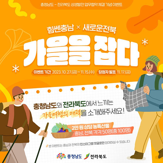 ¡®Èû½ëÃæ³²¡¿»õ·Î¿îÀüºÏ, °¡À»À» Àâ´Ù¡¯¸¦ ÁÖÁ¦·Î ±âȹÇÑ À̹ø À̺¥Æ®´Â 27ÀϺÎÅÍ ´ÙÀ½´Þ 15ÀϱîÁö ¾ç ÁöÀÚüÀÇ °ø½Ä ÀνºÅ¸±×·¥ °èÁ¤*¿¡¼ µ¿½Ã ÁøÇàÇÑ´Ù.
