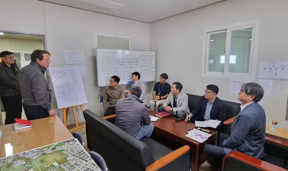 Áö³ 10¿ù 26ÀÏ À¯°æÀç °Ç¼³Á¤Ã¥°úÀå°ú °ü°è Á÷¿øµéÀº ´Ù¸¥ Áö¿ª ¾÷ü°¡ ½Ã°ø ÁßÀÎ °ü³» ´ë±Ô¸ð ¹Î°£ °Ç¼³ »ç¾÷ ÇöÀå »ç¹«¼Ò(¾Æ»ê½Ã ¸ðÁ¾µ¿ 113-10¹øÁö ÀÏ¿ø, ¾Æ»ê ¸ðÁ¾»ûµéÁö±¸ µµ½Ã°³¹ß °ø»ç)¸¦ ã¾Æ »ó»ý Çù·Â ¹æ¾ÈÀ» ³íÀÇÇß´Ù.