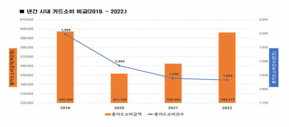 ºÐ¼®¿¡ µû¸£¸é, Ä«µå ¼Òºñ ±Ý¾×(BCÄ«µå)Àº Äڷγª19 ´ëÀ¯Çà ½Ã±âÀÎ 2020³â¿¡ 2019³â ´ëºñ 8.3% °¨¼ÒÇßÀ¸³ª ÀÌÈÄ, 2021³â 1.9%, 2022³â 5.6% µî ¸Å³â Áõ°¡ÇØ Äڷγª19 ÀÌÀü ¼öÁØÀ¸·Î ȸº¹ÇÑ °ÍÀ¸·Î ³ªÅ¸³µ´Ù.