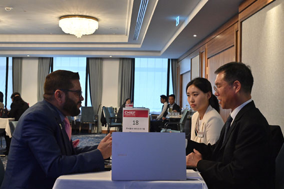 ÇØ¿Ü½ÃÀ尳ô´Ü ±â¾÷µéÀº »ó´ãȸÀå¿¡¼ ¹ÙÀ̾î¿Í 1´ë 1 »ó´ãÀ» ÁøÇàÇϸç, ÇöÁö ÁøÃâ ±³µÎº¸¸¦ ³ù´Ù.
