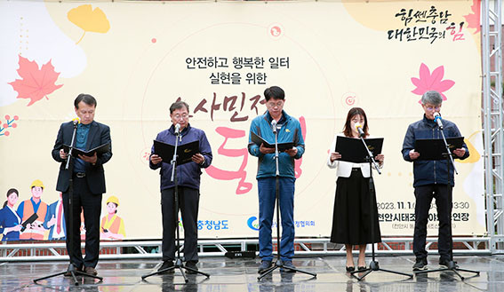 Âü¼®ÀÚµéÀº ¿ÃÇØ °øµ¿¼±¾ð È®»ê ¹× ¾ÈÀü¹®È ½Çõ¿îµ¿ ±â¹Ý¸¶·ÃÀ» À§ÇÑ ³ë»ç¹ÎÁ¤ ½Çõ¼±¾ðÀ» ÅëÇØ ¾ÈÀüÇϰí ÇູÇÑ ÀÏÅÍ ½ÇÇö¿¡ ´ëÇÑ ÀÎ½Ä °øÀ¯ ¹× ½Çõ·ÂÀ» ´ãº¸Çϰí, ÅÂÁ¶»ê ¹«Àå¾Ö³ª´®±æÀ» ÇÔ²² °ÉÀ¸¸ç »çȸÀû ´ã·ÐÀ» °øÀ¯ÇÏ´Â ½Ã°£À» °¡Á³´Ù.