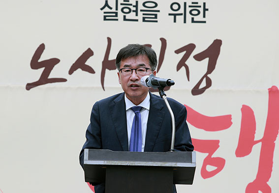 À̳¯ Çà»ç¿¡´Â ÀüÇü½Ä Á¤¹«ºÎÁö»ç¸¦ ºñ·ÔÇØ ¼ÕÇÊÈÆ °í¿ë³ëµ¿ºÎ ´ëÀü°í¿ë³ëµ¿Ã»Àå, ³ë»ç¹ÎÁ¤ÇùÀÇȸ À§¿ø, ½Ç¹«À§¿ø, ºÐ°úÀ§¿ø, ³ë»ç¹Î ´ëÇ¥ÀÚ µî 70¿© ¸íÀÌ Âü¼®Çß´Ù.