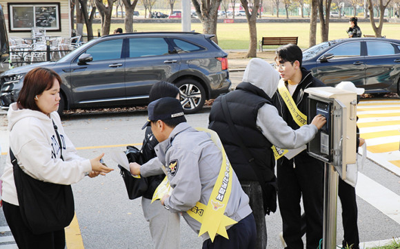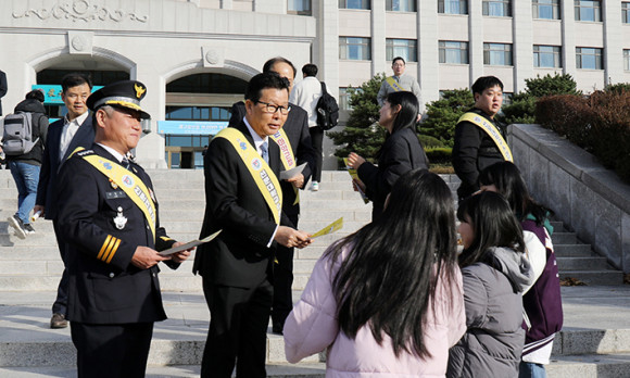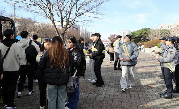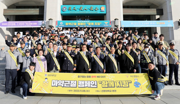 ¹®¼ºÁ¦ ÃÑÀåÀ» ºñ·ÔÇÑ ¼±¹®´ë ±³Á÷¿ø 30¿© ¸í, ÀÌ¿µµµ ¼ÀåÀ» ºñ·ÔÇÑ ¾Æ»ê°æÂû¼ ¼Ò¼Ó °æÂû 30¿© ¸í, ¼±¹®´ë ÃÑÇлýȸ¸¦ Æ÷ÇÔÇÑ ÀçÇлý 140¿© ¸í µî ÃÑ 200¿© ¸íÀº ¿ÀÀü 9½Ã ¼±¹®´ë º»°ü ¾Õ¿¡ ¸ð¿© ¡®¸¶¾à ±ÙÀý! ÇÔ²² ÁöÅ´!¡¯, ¡®¾ÈÀü Ä·ÆÛ½º! ¿ì¸®°¡ ÁöŰÀÚ!¡¯¶ó´Â ±¸È£ Á¦Ã¢À» ½ÃÀÛÀ¸·Î µî±³ÇÏ´Â Çлýµé¿¡°Ô Ä·ÆäÀÎ Àü´ÜÁö¸¦ ³ª´²Áá´Ù. Àü´ÜÁö¿¡´Â ¸¶¾à ½Å°í ¹æ¹ý, ¸¶¾à·ù ¹× ¾à¹° ³²¿ë ¿¹¹æ »ó´ã ¹æ¹ý, ¸¶¾à·ù ¿¹¹æÀ» À§ÇÑ ÁÖÀÇ »çÇ× µîÀÌ ¾È³»µÇ¾î ÀÖ´Ù.