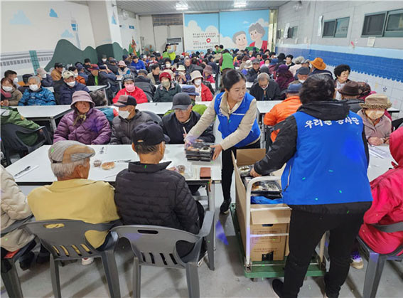 À̳¯ ¿Â¾ç¿Âõ¿ª ÇϺο¡ À§Ä¡ÇÑ °æ·Î¹«·á±Þ½Ä¼¾ÅÍ¿¡¼ (»ç)Å»ºÏ¹Î°øÀÍȰµ¿Áö¿ø¿¬ÇÕ°ú ºñ¿µ¸®¹Î°£´Üü ¿ì¸®¿øÀº °Ü¿ïÀÇ·ù 430¹ú°ú ȸ¿øµéÀÌ ¸¸µç ¼öÁ¦Àá¿Ê 88¹ú, ¾Ö±â½Å¹ß 33ÄÓ·¹¸¦ (»ç)³ª´®°ú±â»Ý ¾Æ»êÁöºÎ°¡ ¿î¿µÇÏ´Â °æ·Î¹«·á±Þ½Ä¼¾ÅÍ ¼Ò¿Ü°èÃþ ¾î¸£½Åµé²² ³ª´©¾î µå¸®µµ·Ï Áö¿øÇß´Ù.