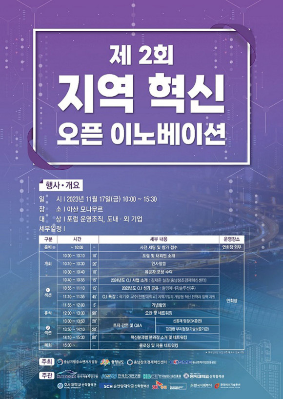 Ãæ³²Ã¢Á¶°æÁ¦Çõ½Å¼¾ÅÍ(¼¾ÅÍÀå °ÈñÁØ)´Â ´ëÇÐ, ¹Î°£, ±â¾÷°ú ÇÔ²² ¡®Á¦2ȸ Áö¿ª Çõ½Å ¿ÀÇÂÀ̳뺣ÀÌ¼Ç Æ÷·³¡¯À» ¿À´Â 11¿ù 17ÀÏ ¾Æ»ê ¸ð³ª¹«¸£¿¡¼ °øµ¿ °³ÃÖÇÑ´Ù°í ¹àÇû´Ù.