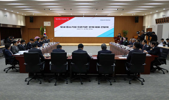 µµ´Â 11¿ù 16ÀÏ µµÃ» ´ëȸÀǽǿ¡¼ ±è Áö»ç¿Í ¼±Ô¼® (Àç)Ãæ³²Å×Å©³ëÆÄÅ© ¿øÀå, Á¶Ã¢Çö Áß¼Ò±â¾÷Áß¾Óȸ ´ëÀü¼¼Á¾Ãæ³²Áö¿ªº»ºÎ ȸÀåÀ» ºñ·ÔÇÑ 14°³ ±â°ü¡¤´Üü ´ëÇ¥µéÀÌ Âü¼®ÇÑ °¡¿îµ¥, ¡®µµ³» Áß¼Ò±â¾÷ °ü·Ã ±â°ü¡¤´Üü ´ëÇ¥ °£´ãȸ¡¯¸¦ °³ÃÖÇß´Ù.