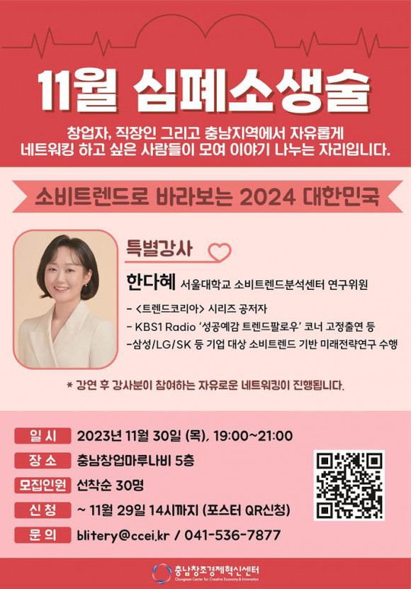 Ãæ³²Ã¢Á¶°æÁ¦Çõ½Å¼¾ÅÍ(ÀÌÇÏ ¡®Ãæ³²¼¾ÅÍ¡¯)¿¡¼ ÁÖ°üÇϴ â¾÷ ¹× ½ºÅ¸Æ®¾÷ »ýŰ踦 Ȱ¼ºÈÇϱâ À§ÇÑ ¡®½ÉÆó¼Ò»ý¼ú¡¯ ³×Æ®¿öÅ· Çà»ç°¡ ¿À´Â 11¿ù 30ÀÏ Ãæ³²Ã¢¾÷¸¶·ç³ªºñ 5Ãþ¿¡¼ ¿¸°´Ù.
