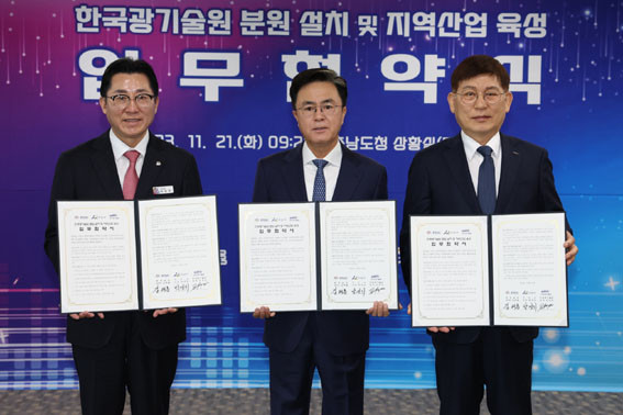 ÀÌ¿¡ ½Å¿ëÁø Çѱ¹±¤±â¼ú¿øÀåÀº ¡°µð½ºÇ÷¹ÀÌ Ã·´Ü»ê¾÷ Áß½ÉÁöÀÎ ¾Æ»ê½Ã¿Í ¾÷¹«Çù¾àÀ» °®°Ô µÅ ±â»Ú°Ô »ý°¢ÇÑ´Ù¡±¸ç ¡°À̹ø Çù¾àÀ» °è±â·Î ¹«±â¹ß±¤ µð½ºÇ÷¹ÀÌ ÃʰÝÂ÷ ±â¼ú»Ó¸¸ ¾Æ´Ï¶ó °úÇÐ À¶ÇÕ±â¼ú °³¹ßÀ» À§ÇØ ÇÔ²² Çù·ÂÇÒ ¼ö Àֱ⸦ ¹Ù¶õ´Ù¡±°í È´äÇß´Ù.