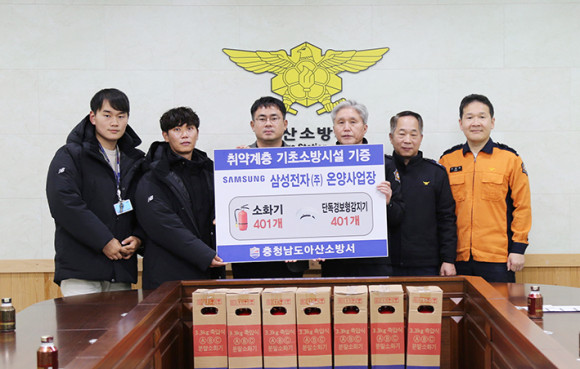 »ï¼ºÀüÀÚ(ÁÖ)¿Â¾ç»ç¾÷ÀåÀº Ãæ³²»çȸº¹Áö°øµ¿¸ð±Ýȸ »ç¶ûÀÇ¿¸Å¸¦ ÅëÇØ ¼Òȱâ 401°³, ´Üµ¶°æº¸Çü °¨Áö±â 401°³¸¦ ¾Æ»ê¼Ò¹æ¼¿¡ ÁöÁ¤ ±âºÎÇßÀ¸¸ç, »ï¼ºÀüÀÚ(ÁÖ)¿Â¾ç»ç¾÷Àå Á÷¿øµéÀÌ ¹è¹æÀ¾ °ø¼ö¸® µ¶°Å³ëÀΰ¡±¸ ¹æ¹®ÇÏ¿© Á÷Á¢ ¼Òȱ⠺¸±Þ ¹× ´Üµ¶°æº¸Çü°¨Áö±â ¼³Ä¡ Ȱµ¿À» ½Ç½ÃÇß´Ù.