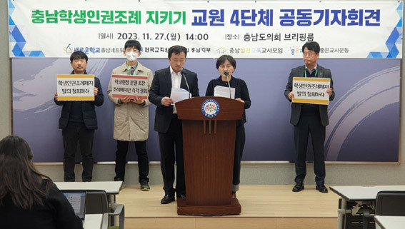À̵éÀº Áö³ 11¿ù 27ÀÏ ¿ÀÈÄ 2½Ã Ãæ³²µµÃ» ºê¸®Çνǿ¡¼ °øµ¿ ±âÀÚȸ°ßÀ» °®°í ¡°Ãæ³²µµÀÇȸ´Â Ãæ³²ÇлýÀαÇÁ¶·Ê ÆóÁö Áï°¢ Áß´ÜÇϰí ÀÌ¹Ì ÀÖ´Â ±³±Çº¸È£Á¶·Ê¸¦ °ÈÇ϶󡱰í Ã˱¸Çß´Ù.