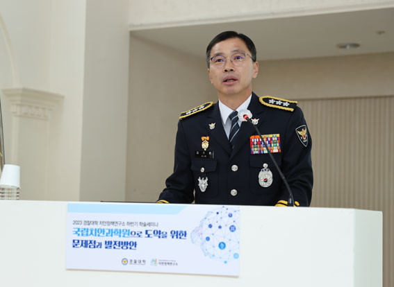 ±è¼öȯ °æÂû´ëÇÐÀåÀº ȯ¿µ»ç¿¡¼ ¡°¾ÈÀüÇÑ »çȸ¸¦ ¸¸µé±â À§ÇÑ °æÂûÀÇ ¿ªÇÒÀº ¸Å¿ì Áß¿äÇϸç, ÀÌ·¯ÇÑ ¸ñÇ¥¸¦ ´Þ¼ºÇϱâ À§ÇØ ¡®°úÇÐÄ¡¾È¡¯ÀÌ °¡Àå È¿À²ÀûÀÌ°í °·ÂÇÑ ¼ö´ÜÀÌ µÉ ¼ö ÀÖ´Ù.¡±¸é¼, ¡°Ä¡¾È ºÐ¾ß¿¡ Æ¯ÈµÈ ¿¬±¸°³¹ßÀ» ÇØ ¿Â Ä¡¾ÈÁ¤Ã¥¿¬±¸¼Ò°¡ °úÇÐÄ¡¾È¿¬±¸ÀÇ ÁßÃßÀû ±â°üÀ¸·Î ¹ßÀüÇØ ³ª°¡¾ß ÇÑ´Ù.¡±¶ó°í °Á¶Çß´Ù.
