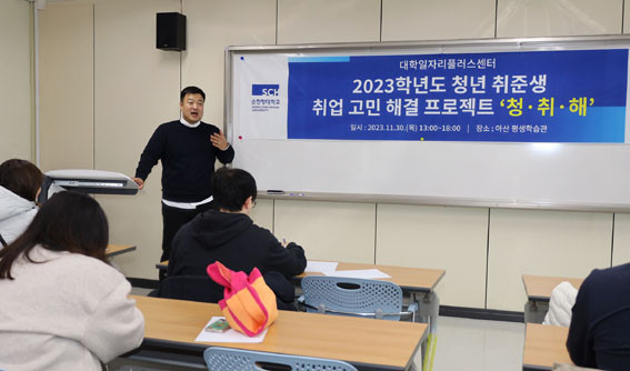 | | ¡è¡è ¡ã¼øÃµÇâ´ë ´ëÇÐÀÏÀÚ¸®Ç÷¯½º¼¾ÅÍÀÇ ¸ÂÃãÇü Ãë¾÷¼ºñ½º ¡®Ã»ÃëÇØ¡¯ ÇÁ·Î±×·¥¿¡¼ ¼ÕµÎȯ °»ç°¡ ¡®Ãë¾÷ÀÇ ºí·ç¿À¼Ç ¾ËÂ¥ °¼Ò±â¾÷ Ãë¾÷Àü·«¡¯À» ÁÖÁ¦·Î ¿¶í °ÀǸ¦ ÆîÄ¡°í ÀÖ´Ù. <»çÁøÁ¦°ø=¼øÃµÇâ´ëÇб³> | ¨Ï ¿Â¾ç½Å¹® | | ¼øÃµÇâ´ëÇб³(ÃÑÀå ±è½Â¿ì)´Â Áö³ 10¿ù 27ÀϺÎÅÍ 11¿ù 30ÀϱîÁö ã¾Æ°¡´Â ¸ÂÃãÇü Ãë¾÷ ¼ºñ½ºÀΠû³â ÃëÁØ»ý Ãë¾÷ °í¹Î ÇØ°á ÇÁ·ÎÁ§Æ® ¡®Ã»ÃëÇØ¡¯ ÇÁ·Î±×·¥À» ¼ºÈ²¸®¿¡ ¸¶ÃÆ´Ù°í ¹àÇû´Ù.