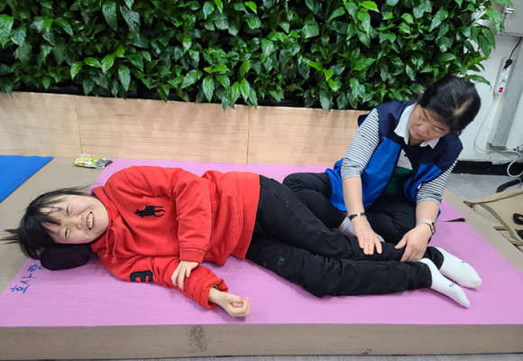 ÇÑÆí, ¾Æ»ê½ÃÀå¾ÖÀκ¹Áö°ü ÁÖ°£º¸È£½Ã¼³¿¡¼´Â ¹ß´ÞÀå¾ÖÀÎÀÇ ÀçȰ ±â´ÉÇâ»ó ¹× ÀÚ¸³»ýȰ¿¡ ÇÊ¿äÇÑ ´Ù¾çÇÑ ¼ºñ½º Á¦°øÀ¸·Î ÀÚ¸³ ´É·ÂÀ» Çâ»óÇÏ°í »çȸ±¸¼º¿øÀ¸·Î¼ÀÇ ¿ªÇÒÀ» ¼öÇàÇÒ ¼ö ÀÖµµ·Ï ´Ù¾çÇÑ ÇÁ·Î±×·¥À» ÁøÇàÇϰí ÀÖ´Ù.