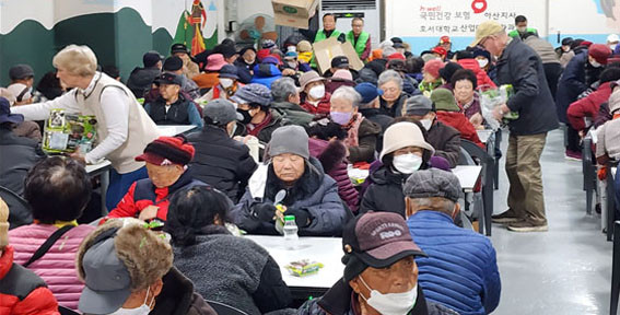 ±èµÎõ ´ëÇ¥´Â ¡°Æò¼Ò¿¡µµ ¼±Ä£ÀÇ ¶æÀ» µû¶ó ºÀ»çÀÇ ¸¶À½À¸·Î ÇÔ²² Çߴµ¥ ÀÌ·¸°Ô ¾î¸£½ÅµéÀÇ ¹«·á±Þ½Ä¿¡ µ¿ÂüÇÒ ¼ö ÀÖ¾î ÇູÇÏ´Ù¡±¸é¼ ¡°¾ÕÀ¸·Î ¾î¸£½Å ±Þ½Ä¿¡ °Ç°½Äǰ(µÎºÎ. Äᳪ¹°, ¹¬. ¼øµÎºÎ)À» Áö¿øÇص帮´Â µî ±â»Û ¸¶À½À¸·Î Çù·ÂÇϰڴ١±°í ¸»Çß´Ù.