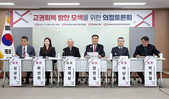 | | ¡è¡è <»çÁøÁ¦°ø=Ãæ³²µµÀÇȸ> | ¨Ï ¿Â¾ç½Å¹® | | Ãæ³²µµÀÇȸ´Â 12¿ù 12ÀÏ µµÀÇȸ ȸÀǽǿ¡¼ ¡®±³±Çȸº¹ ¹æ¾È ¸ð»ö¡¯À» ÁÖÁ¦·Î ÀÇÁ¤Åä·Ðȸ¸¦ °³ÃÖÇß´Ù.
