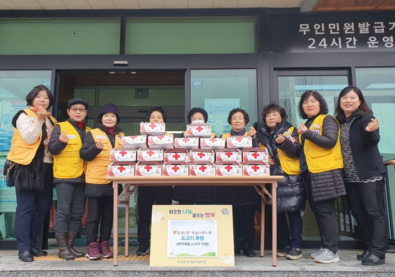 ±ÄÀº ³¯¾¾¿¡µµ ºÒ±¸Çϰí Àû½ÊÀÚºÀ»çȸ¿¡¼´Â ¾î·Á¿î ÀÌ¿ô 25°¡±¸¿¡ Á÷Á¢ ã¾Æ°¡ °¢ °¡±¸´ç ¼Ò°í±â 600g¾¿ Àü´ÞÇÏ°í ¾ÈºÎ¸¦ »ìÆñ´Ù.