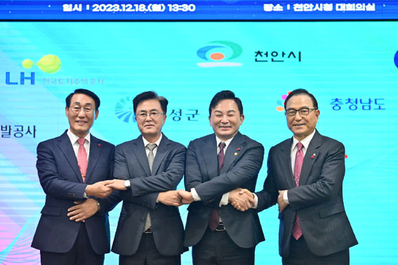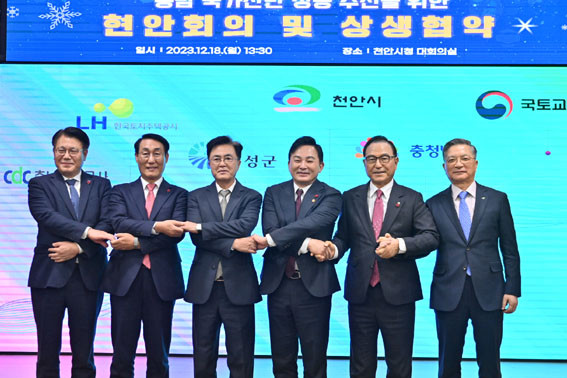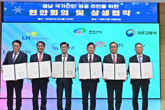 µµ´Â 12¿ù 18ÀÏ Ãµ¾È½Ãû ´ëȸÀǽǿ¡¼ ±èÅÂÈì Áö»ç¿Í ¿øÈñ·æ ±¹ÅäºÎ Àå°üÀ» ºñ·ÔÇØ ¹Ú»óµ· õ¾È½ÃÀå, ÀÌ¿ë·Ï È«¼º±º¼ö, ÀÌÇÑÁØ Çѱ¹ÅäÁöÁÖÅðø»ç(LH) »çÀå, Á¤¼®¿Ï Ãæ³²°³¹ß°ø»ç »çÀå µîÀÌ Âü¼®ÇÑ °¡¿îµ¥, Çö¾ÈȸÀÇ ¹× »ó»ýÇù¾à½ÄÀ» °³ÃÖÇß´Ù.