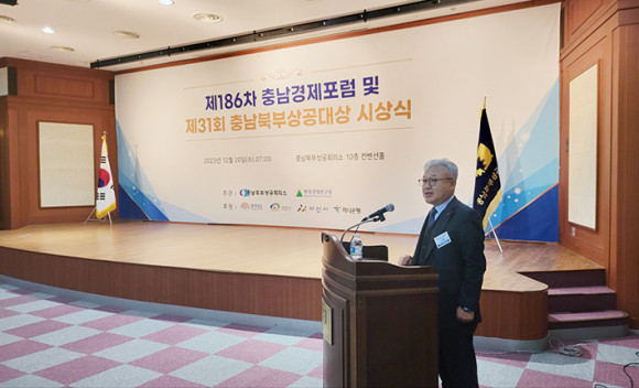 Ãæ³²ºÏºÎ»ó°øÈ¸ÀǼÒ(ȸÀå ¹®»óÀÎ)¿Í Çö´ë°æÁ¦¿¬±¸¿øÀÌ °øµ¿ ÁÖ°üÇϰí ÃæÃ»³²µµ, õ¾È½Ã, ¾Æ»ê½Ã, ÇϳªÀºÇà¿¡¼ ÈÄ¿øÇÏ´Â ¡®Á¦186Â÷ Ãæ³²°æÁ¦Æ÷·³¡¯°ú ¡®Á¦31ȸ Ãæ³²ºÏºÎ»ó°ø´ë»ó ½Ã»ó½Ä¡®ÀÌ 12¿ù 20ÀÏ(¼ö) »ó°øÈ¸ÀÇ¼Ò 10Ãþ ÄÁº¥¼ÇȦ¿¡¼ °³ÃֵƴÙ.