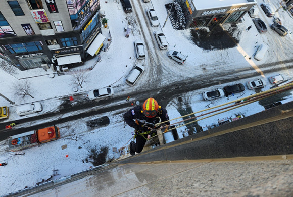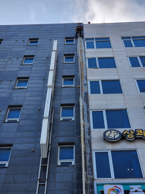 ÇöÀå¿¡ µµÂøÇÑ 119±¸Á¶´ë´Â °íµå¸§ ³«ÇÏ ¿¹»ó ÁöÁ¡¿¡ ¾ÈÀü¶óÀÎÀ» ¼³Ä¡ÇÏ°í °Ç¹° ¿Á»ó¿¡¼ ·ÎÇÁ·Î ÇϰÇÏ¸é¼ °íµå¸§À» ¿ÏÀüÈ÷ Á¦°ÅÇß´Ù. ÀÌÈÄ ÀÜÇØ¸¦ Á¤¸®ÇÏ°í ¿°ÈÄ®½·À» »ìÆ÷ÇÏ´Â µîÀÇ ¾ÈÀüÁ¶Ä¡µµ ½Ç½ÃÇß´Ù.