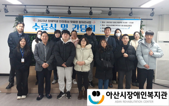 ¾Æ»ê½ÃÀå¾ÖÀκ¹Áö°ü(°üÀå ÀÌâȣ)Àº 12¿ù 21ÀÏ 3Ãþ ÅëÇÕ±³À°Àå¿¡¼ ±³À°ºÎ¿Í Çѱ¹Àå¾ÖÀΰ³¹ß¿øÀÌ Áö¿øÇÏ´Â ¡®2023 Àå¾ÖÇлý ÇöÀåÁ᫐ ¸ÂÃãÇü ÀÏÀÚ¸®»ç¾÷(2ȸ±â)¡¯¿¡ Âü¿©ÇÑ 6¸íÀÇ Àå¾ÖÇлý ¹× º¸È£ÀÚ, Çб³ ¹× »ç¾÷ü °ü°èÀÚµéÀÌ Âü¼®ÇÑ °¡¿îµ¥ ¼ö·á½Ä ¹× °£´ãȸ¸¦ °¡Á³´Ù.