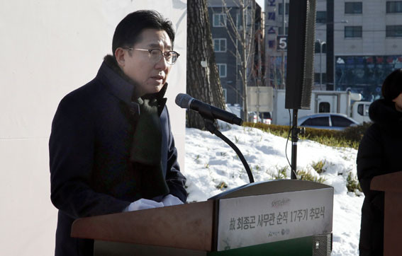 ¹Ú°æ±Í ½ÃÀåÀº Ãßµµ»ç¿¡¼ ¡°À۳⿡ ÃÖ »ç¹«°ü´Ô°ú Çß´ø ¾à¼ÓÀ» Áö۱â À§ÇØ ÀÌ ÀÚ¸®¿¡ ´Ù½Ã ¸ð¿´´Ù. °íÀΰú Èñ·Î¾Ö¶ôÀ» °°ÀÌ ÇÑ ÀûÀº ¾øÁö¸¸, ÃÖ »ç¹«°ü´Ô°ú °øÁ÷ »ýȰÀ» ÇÔ²²ÇÑ ºÐµé·ÎºÎÅÍ ´©±¸º¸´Ù ¸ð¹üÀÌ µÇ´Â ÂüµÈ °øÁ÷ÀÚ¶ó°í ÀüÇØ µé¾ú´Ù¡±¸ç, ¡°°øÁ÷À» õÁ÷À¸·Î ¿©±â¸ç ½Ã¹ÎÀ» À§ÇØ Çå½ÅÇϼ̴ø ÃÖ »ç¹«°ü´ÔÀº ¿©ÀüÈ÷ ¾Æ»ê½Ã °øÁ÷ÀÚµéÀÇ ¸¶À½¼Ó¿¡ »ì¾Æ °è½Å´Ù¡±°í ¾ÖµµÇß´Ù.
