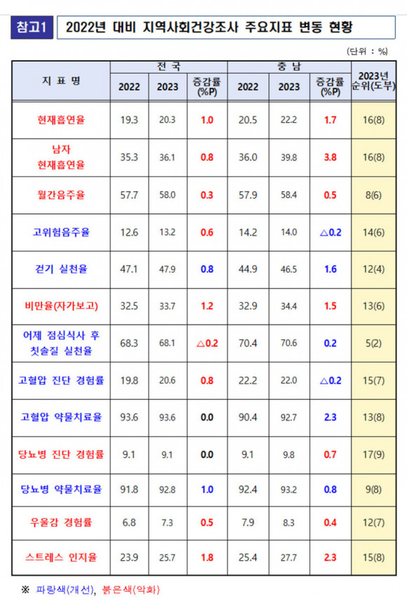 Ä©¼ÖÁú ½ÇõÀ²(70.6%)Àº Àü³â ´ëºñ 0.2%p Áõ°¡Çß°í °íÀ§Çè À½ÁÖÀ²(14.0%), °íÇ÷¾Ð Áø´Ü °æÇè·ü(22.0%)Àº Àü³â ´ëºñ 0.2%p¾¿ °¨¼ÒÇß´Ù.