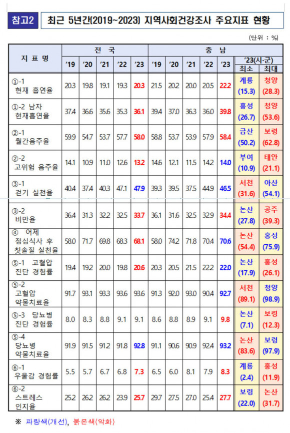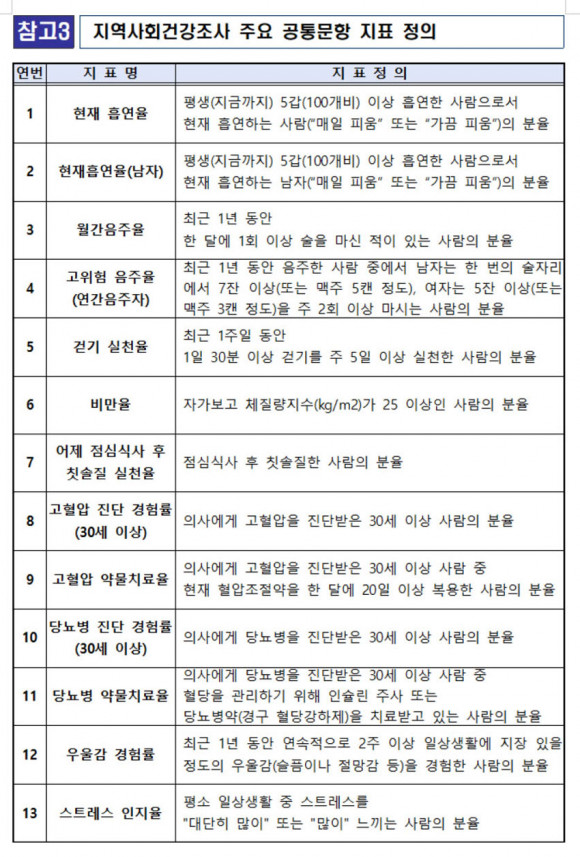 µµ´Â Áö¿ª»çȸ°Ç°Á¶»ç ÈÄ À̵ëÇØ °á°ú¸¦ ¹ßÇ¥Çß´ø ±âÁ¸°ú ´Þ¸® ¿ÃÇØ °á°ú¸¦ ¿¬³» ¹ßÇ¥ÇÔ¿¡ µû¶ó ¾ÕÀ¸·Î °Ç°ÁöÇ¥ °³¼±¿¡ ÃֽŠÅë°è¸¦ Ȱ¿ë, Áö¿ªº° Ư¼º¿¡ ¸Â´Â Á¤Ã¥ ¹× »ç¾÷À» ¼ö¸³¡¤ÃßÁøÇÒ °èȹÀÌ´Ù.