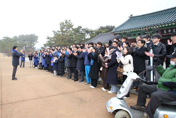 À̳¯ º¹ ¿¹ºñÈ帴 »õÇØ ÀÏÃâÀ» º¸±â À§ÇØ ³²»ê¿¡ ¸ðÀÎ ¾Æ»ê½Ã¹Îµé¿¡°Ô ½Å³âÀλ縦 ÀüÇß´Ù. ÀÌÈÄ, ½Ã¹Î¡¤ÁöÁöÀÚµé°ú ÇÔ²² ÇöÃæ»ç¸¦ Âü¹èÇÏ°í ¹æ¸í·Ï¿¡ ¡®¿ÀÁ÷ ³ª¶ó¿Í ±¹¹ÎÀ» À§ÇØ 22´ë ÃѼ± ½Â¸®!¡¯¶ó´Â ±ÛÀ» ³²°Ü ´Ù°¡¿À´Â Á¦22´ë ÃѼ±½Â¸®¿¡ ´ëÇÑ °ÇÑ °áÀǸ¦ ´ÙÁ³´Ù.