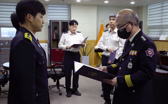 ù¹ßÀ» ³»µó´Â ½Å±Ô ¼Ò¹æ°üµéÀº ÃæÃ»¼Ò¹æÇб³¿¡¼ 24ÁÖ°£ ¼Ò¹æ Ȱµ¿¿¡ ÇÊ¿äÇÑ ÈÆ·Ã°ú ÇöÀå½Ç½ÀÀ» ¸¶Ä¡°í ¾Æ»ê¼Ò¹æ¼¿¡ ¹èÄ¡µÆ´Ù.